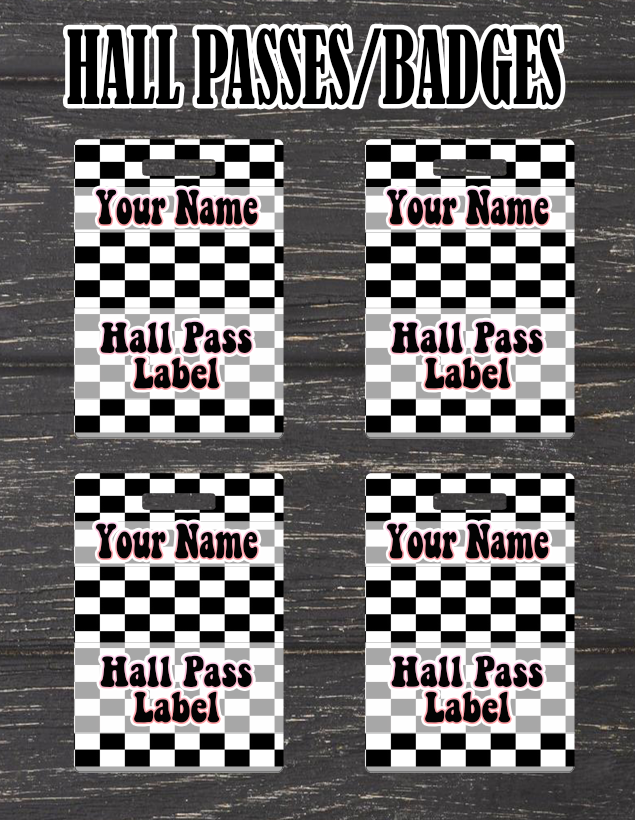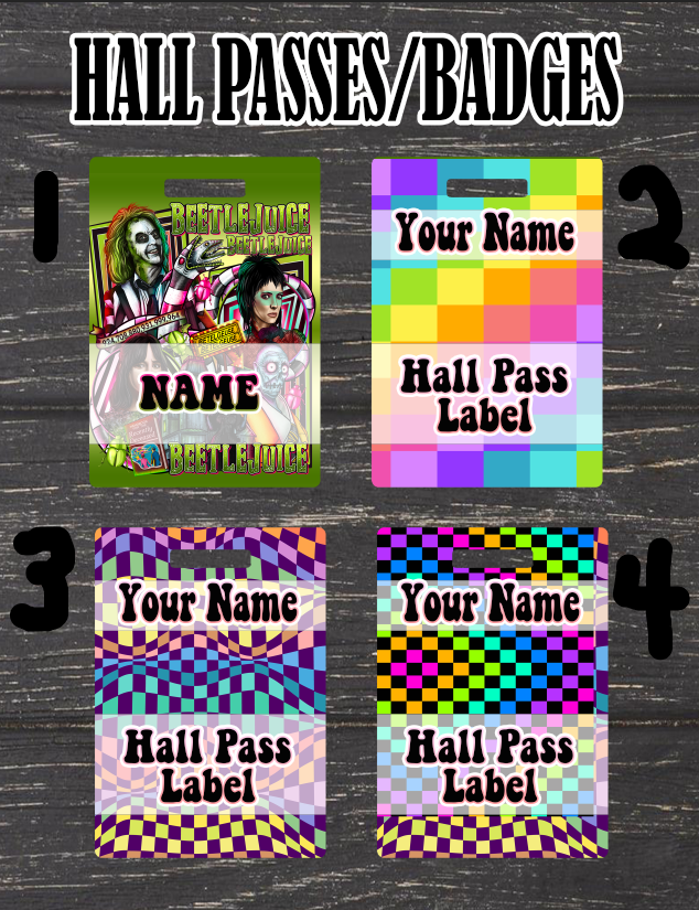 CUSTOM BADGES/HALL PASSES