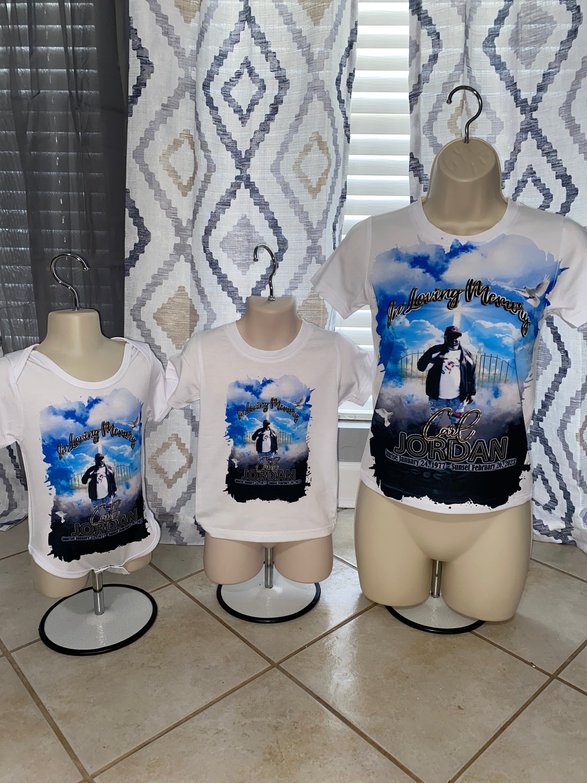 We make custom designs for ALL events. Email us your information and our in house art department can customize your design for you or you can create your own design. Available sizes in Unisex, Youth, and Infant. Adults can choose from COTTON shirts, which are shirts that are 100% POLYESTER. Refunds are not accepted due to the custom nature of this product